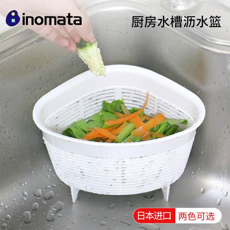 【INOMATA】小型瀝水籃(藍色/白色)