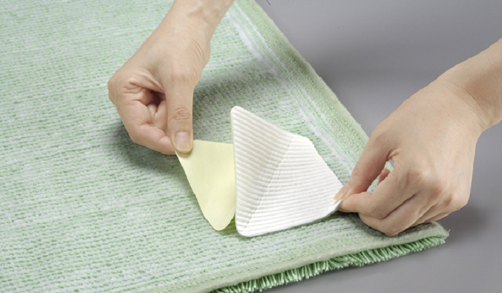 使用方式:解掉背面的貼紙,將粘著面粘在墊子上,按壓固定好即可。粘貼之前將墊子和地面清洗干凈。